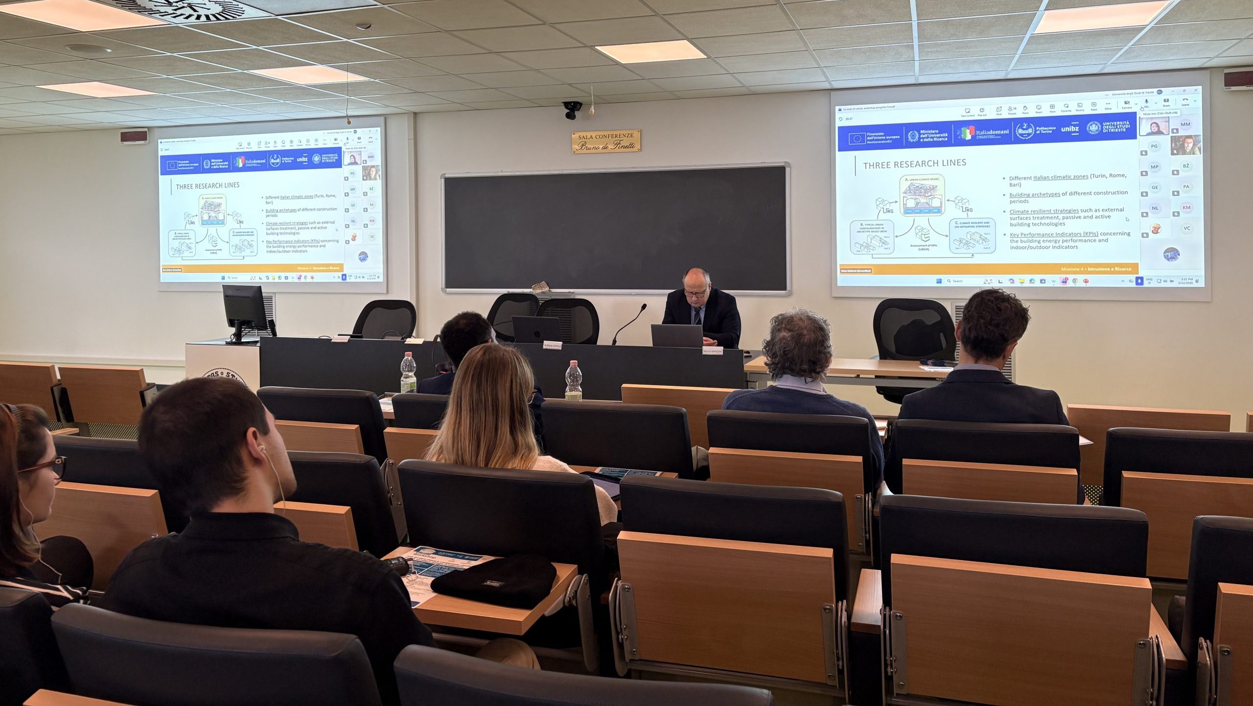 The Trieste workshop was held at the Università degli Studi di Trieste and was organized by Marco Manzan and Raffaela Cefalo. After Ilaria Ballarini presented the project, the event illustrated regional experiences and research in the field of urban climate modelling, adaptation and mitigation strategies. A translation service allowed people from neighbouring Slovenia to participate as well.