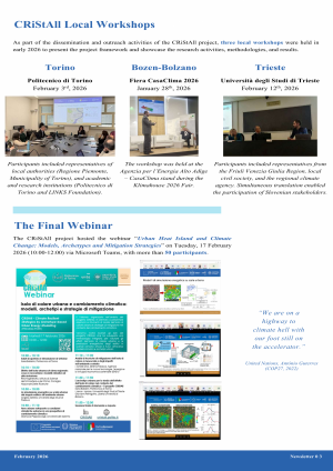 As part of the dissemination and outreach activities of the CRiStAll project, three local workshops were held in early 2026 to present the project framework and showcase the research activities, methodologies, and results.